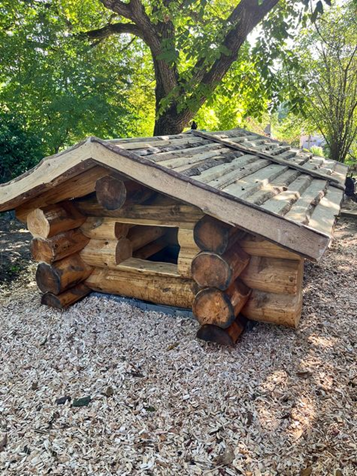 Unsere alte Spielhütte war leider nicht mehr bespielbar und musste weichen. Doch zum Glück konnten wir eine neue Hütte gewinnen! Diese wurde in liebevoller Eigenleistung mit einem soliden Fundament und einem schützenden Dach ergänzt. Nun erstrahlt sie in neuem Glanz und lädt die Kinder wieder zum Spielen, Verstecken und Entdecken ein.